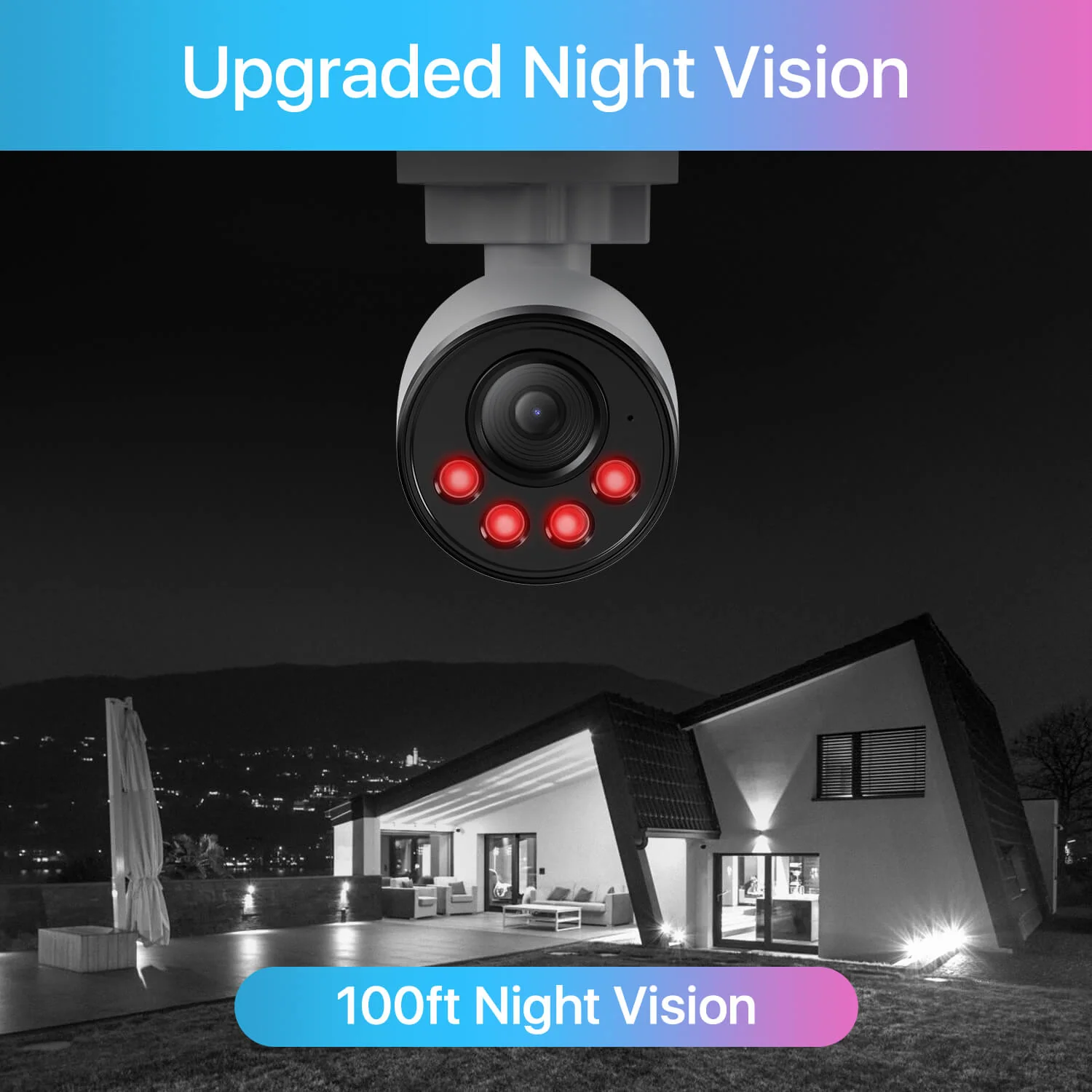 Encased in solid aluminum shell, the robust camera withstands harsh weather conditions. It keeps you protected inside and out.
