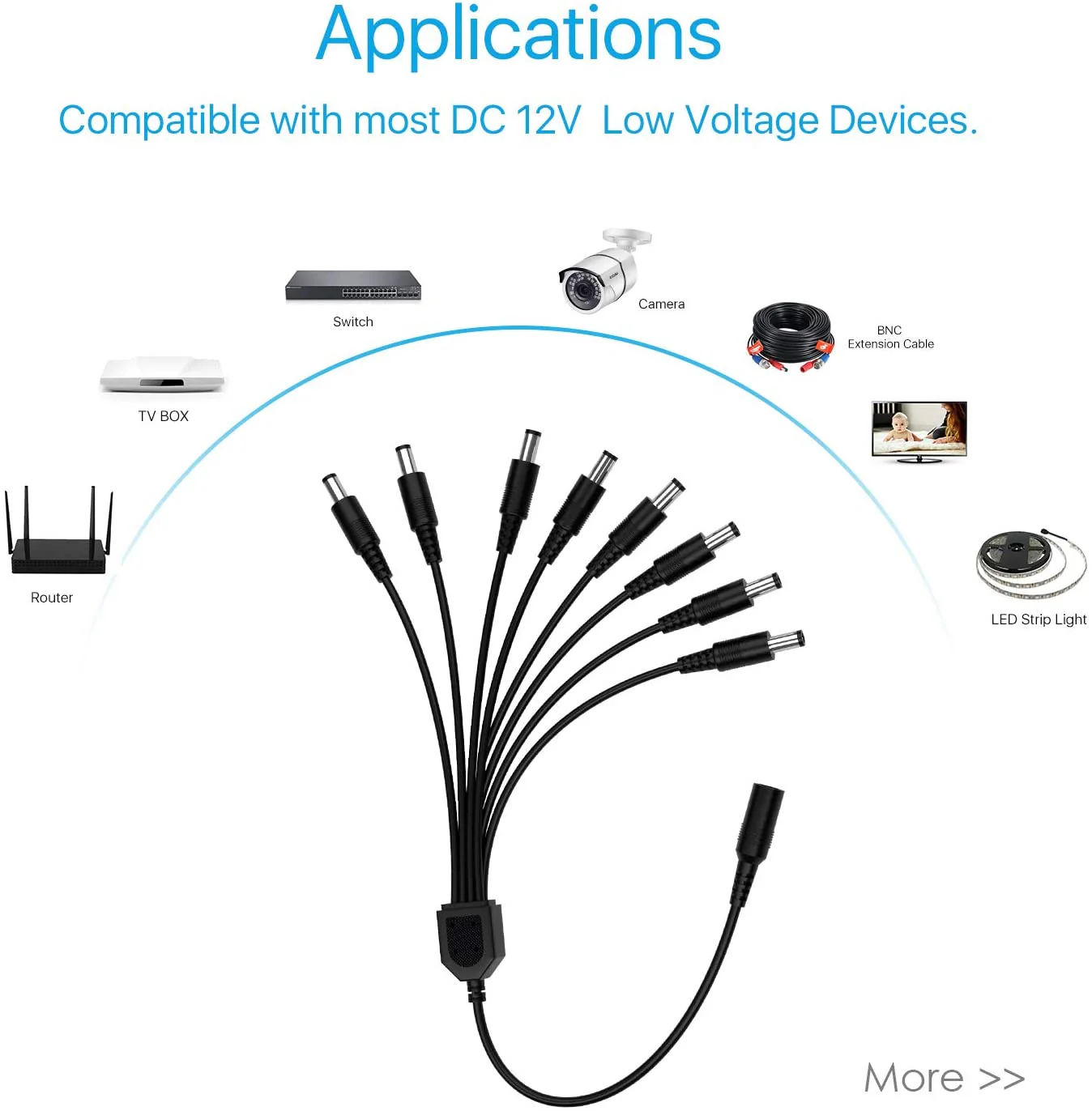 -70%DC 1 to 4 Power Splitter Cord, DC 1 to 8 Power Splitter Cord, Y Adapter—